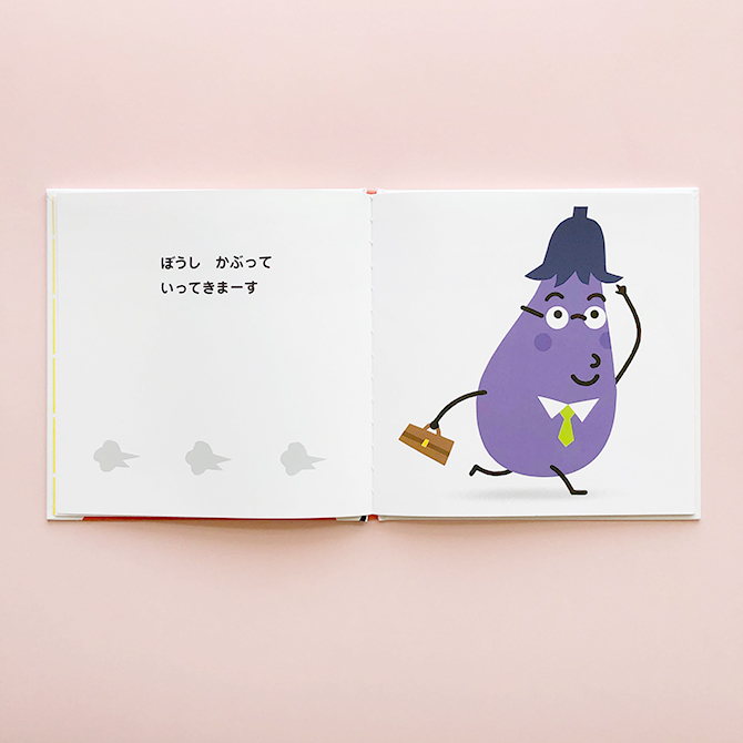 登場するのは、なす、パイナップル、かきなどの、野菜やくだものたち。