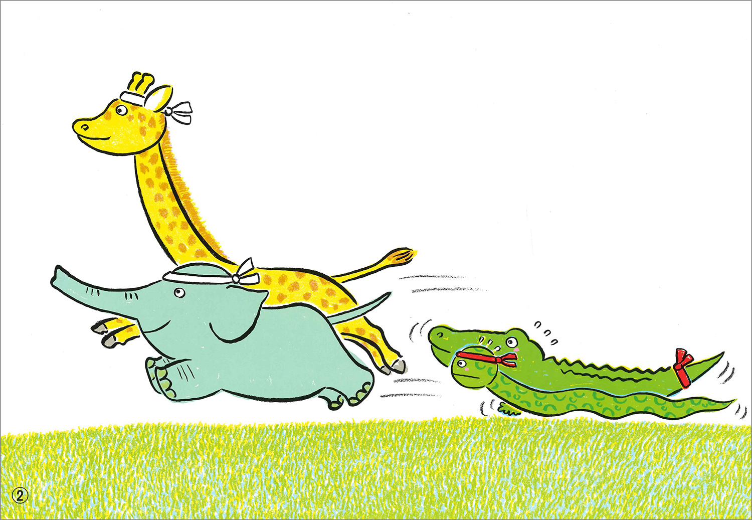 今日は、運動会。いちについてー、よーい、どん!白組のキリンさん、ゾウさんを追いかけるのは、赤組のワニさん、ヘビさん。“ぱかぱか ぱかーん”“にょろにょろ にょろにょろ”さあ、勝ったのはどっちかな?