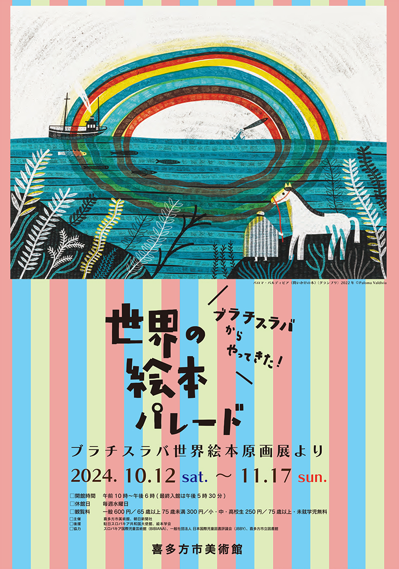 10月12日(土)から、喜多方市美術館にて『ブラチスラバからやってきた!世界の絵本パレード』が開催されます。2023年10⽉から12⽉にかけてブラチスラバで開催された「ブラチスラバ世界絵本原画展(通称BIB)」 2023(第29回展)の出品作品を国内で紹介する展覧会です。