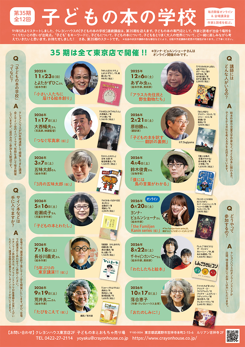 作家と読者が出会う場所をつくりたいとの思いが出発点の「子どもの本の学校」連続講座・第35期(全12回開催)が、11/23(日)からスタートします。