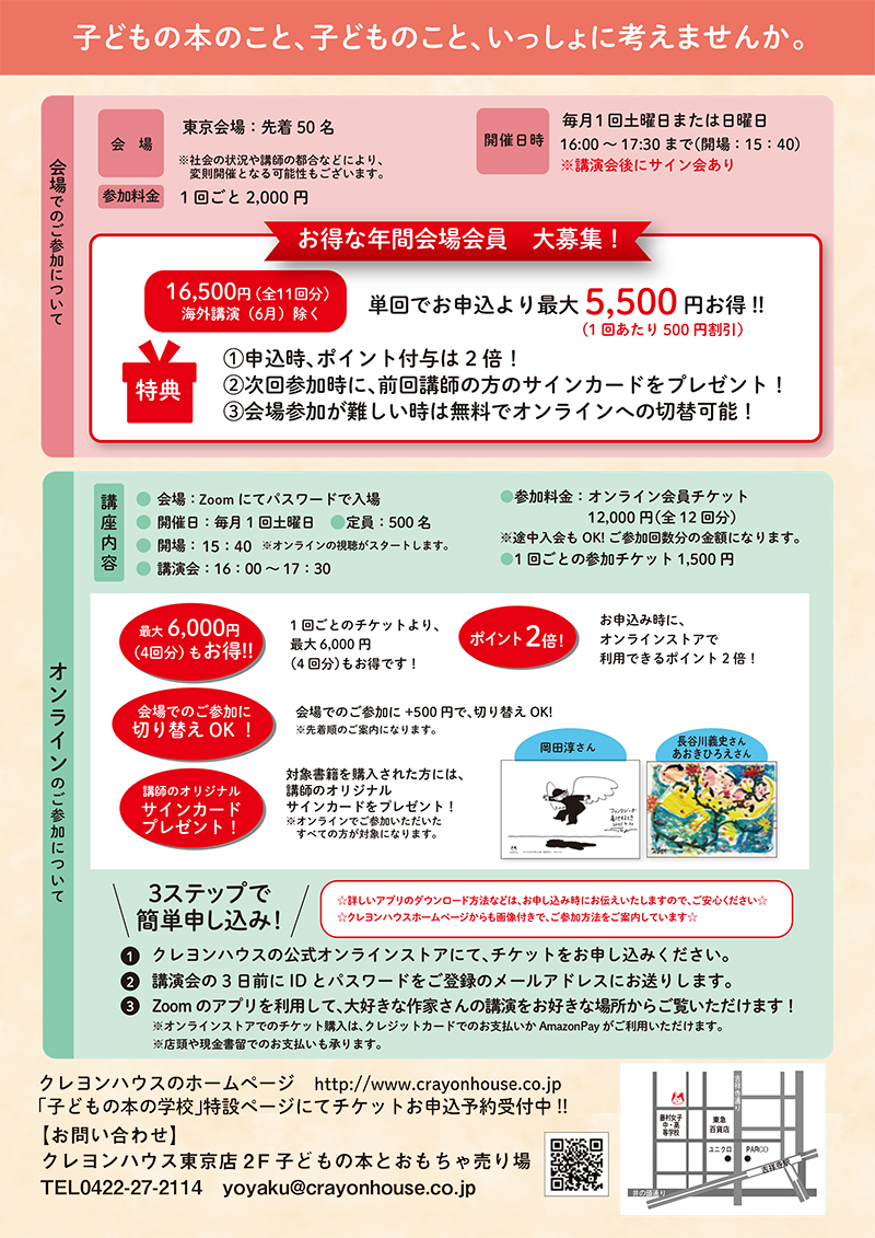 お申し込みの詳細は、クレヨンハウスの公式オンラインストアにて、チケットをお申し込みください。