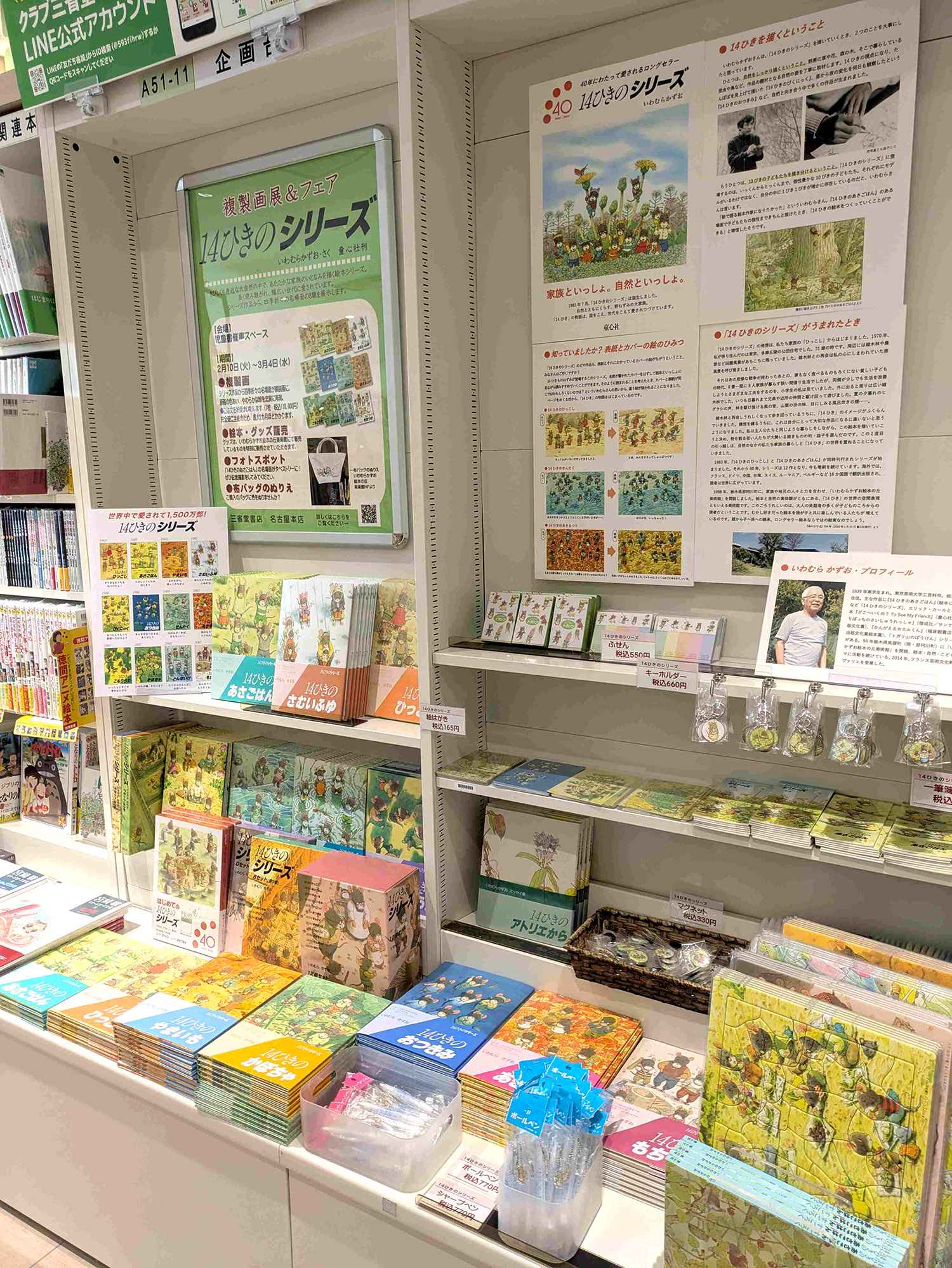 ただいま三省堂書店名古屋本店にて「14ひきのシリーズ」複製画展&フェアが行われています。世界中で愛されているロングセラー絵本シリーズ12点がせいぞろい! 複製画やグッズも販売しております。