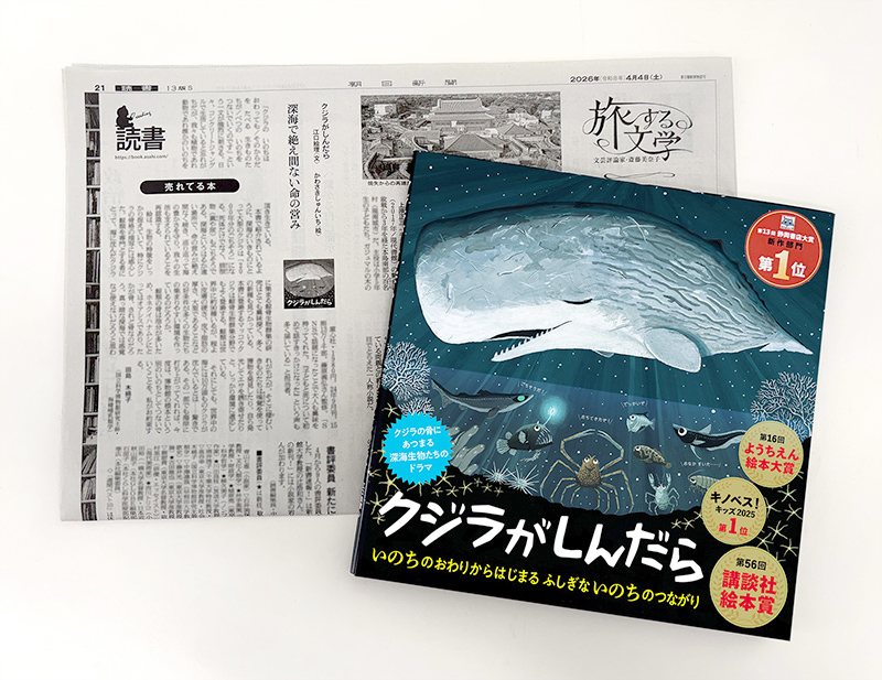 4月4日(土)の朝日新聞(朝刊)にて、『クジラがしんだら』(江口絵理 文/かわさきしゅんいち 絵/藤原義弘 監修)が紹介されました。