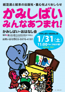 <東京都文京区>1/31(土)童心社KAMISHIBAI HALLにて、紙しばいおはなし会開催!