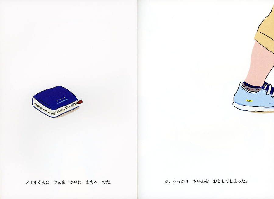 「つえをかってきてくれんかの」ノボルくんは、おじいちゃんにたのまれた。でもうっかりさいふをおとしてしまった。こうばんにいくと、フラミンゴのおまわりさんがまげていたひだりあしをとって「つえのかわりに、さしあげましょう」。ノボルくんが帰ろうとすると「おい、そこのぼうや。つえをかしてくれ」。声をかけたのは、腰のいたいオランウータン。ノボルくんはオランウータンにつえをかして、病院までついていった。
