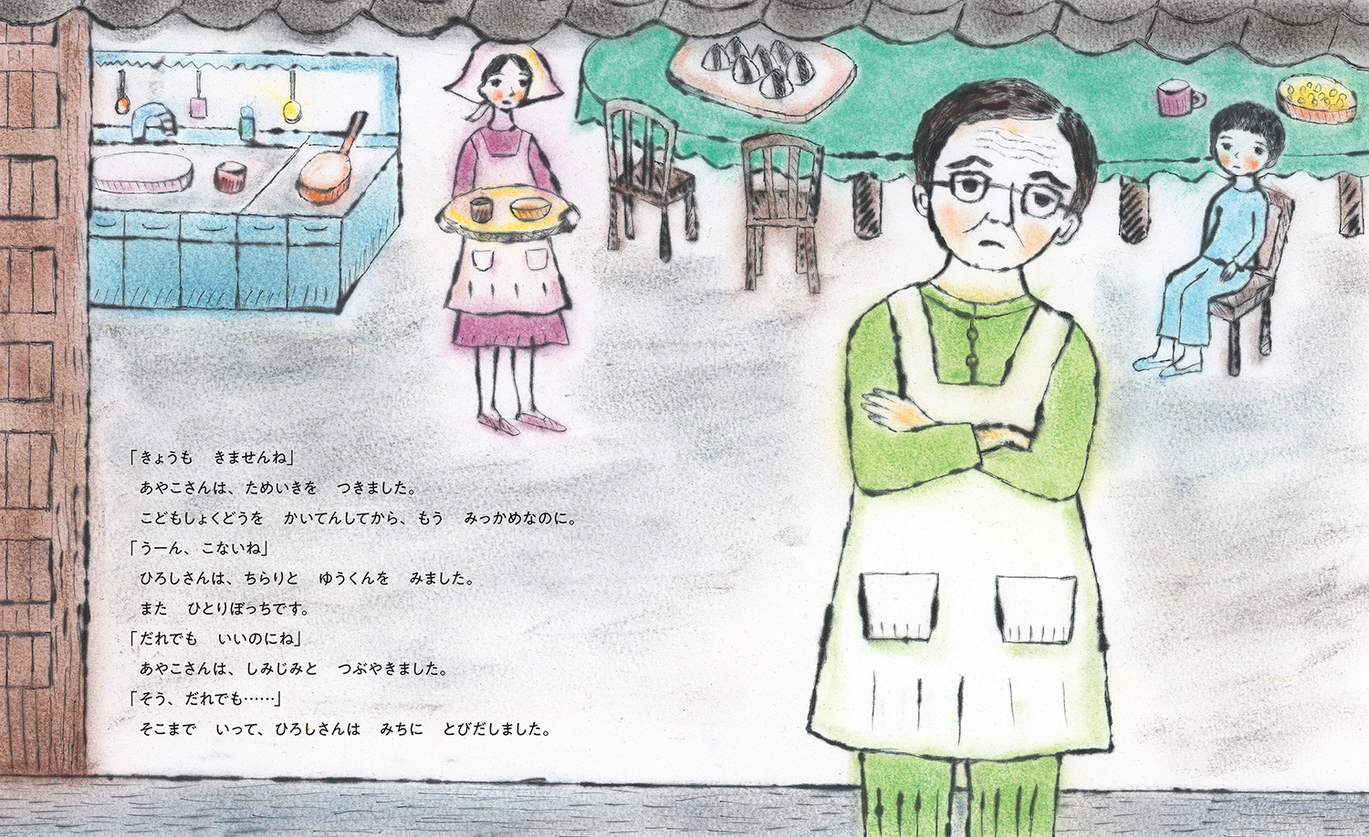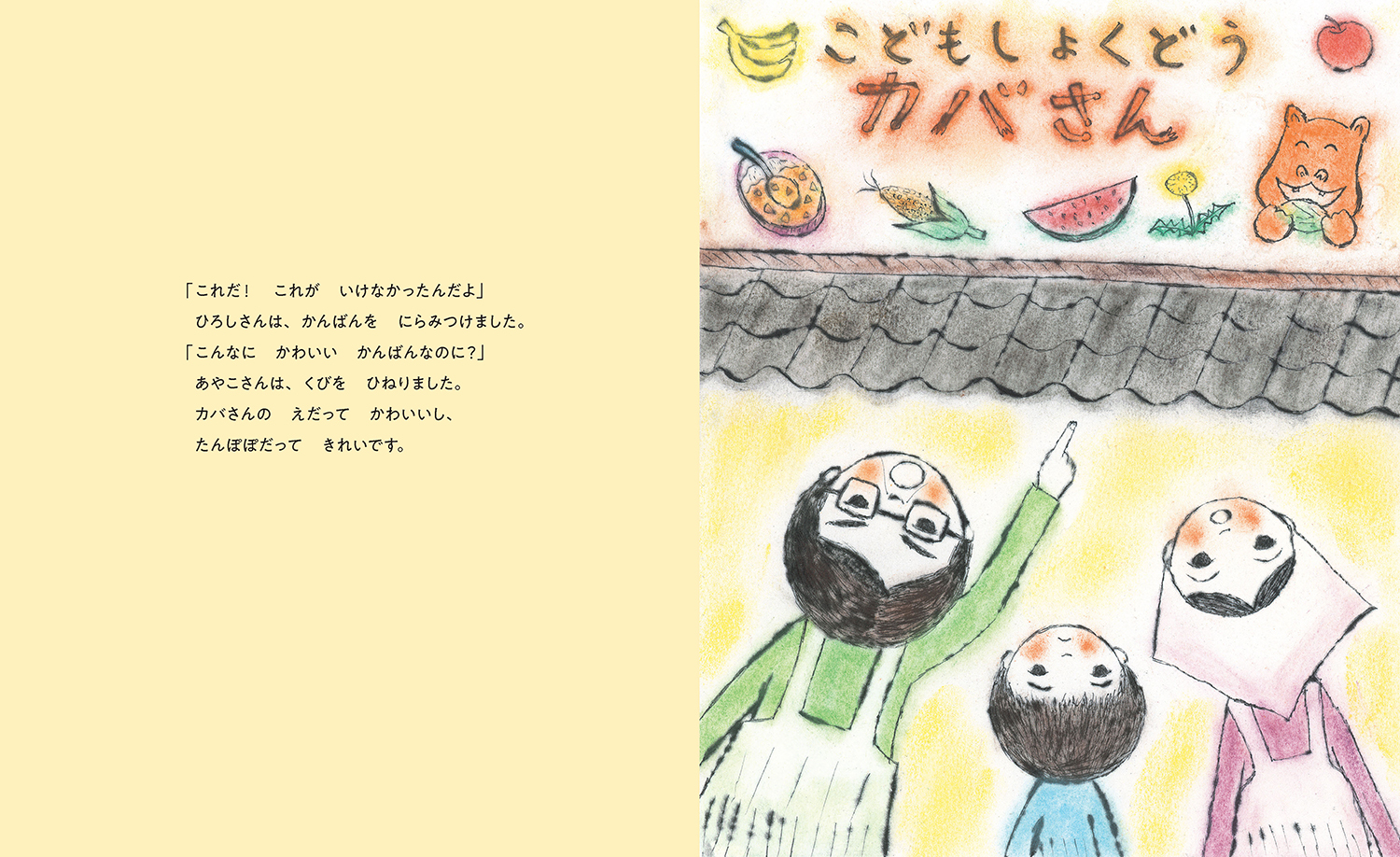 「だれでもどうぞ」の看板を見てこども食堂にきたのは、カバ! そして、おばけたちもやってきました。子どもたち、お年寄りも加わって……。にぎやかで楽しいこども食堂は、みんながつながるあたたかい居場所です。