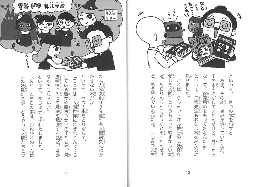 「手紙」「ホラー作家の話」「図書室の階段」など“本や文字”をテーマにふしぎな話を13話収録。