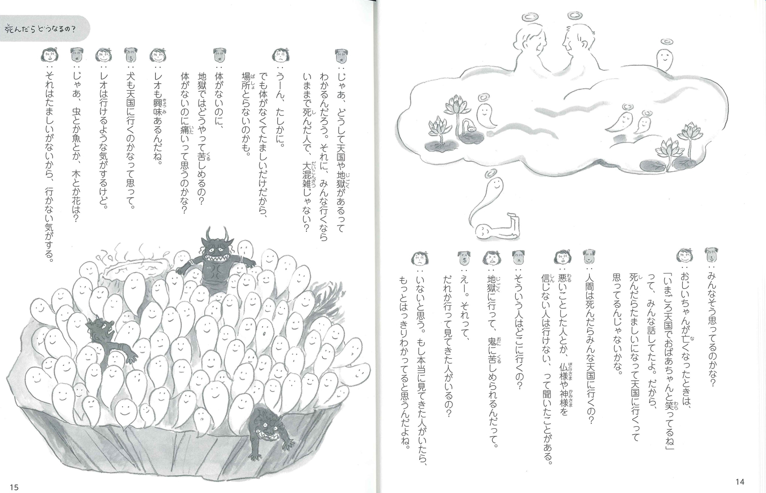 「死んだらどうなる?」「なぜ食べていい動物とだめな動物がいるの?」「なぜ環境は守らないといけないの?」きみはどう思う? りん(女の子)とレオ(犬)の対話を読んで、いっしょに考えてみよう!