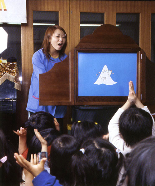 紙芝居を演じながら、観客の子どもたちみんなと「ぽん!」とたたきながらお話が進む、大人気の子ども参加型かみしばいの大型版です。