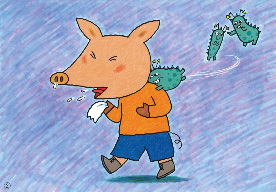 かぜヒッキーは風にのって、くっつける子を探しています。ヒッキーにくっつかれると、その子は鼻水がでたり、熱がでたり…風邪をひいてしまいます。