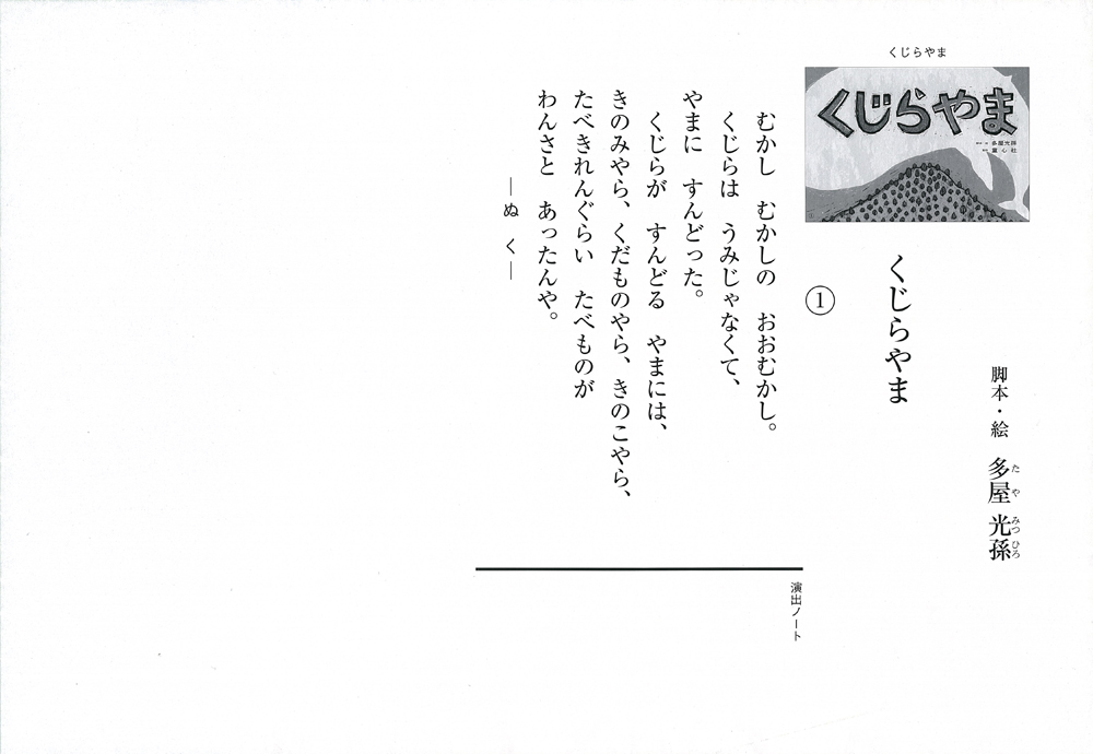 むかしむかしのおおむかし、くじらは海じゃなくて、山にすんどった。さいしょ、くじらはからだが小さかったんやけど、山のおいしいものをどんどんたべて大きくなり、歩きまわれなくなってしまった。そんなある日、くじらがくしゃみをしたら山の木と動物の半分が吹き飛んで、おならをしたら、そのあまりのにおいに山の動物たちがみんな出ていってしまった。くじらはかなしくて泣き続けていると、山の神さまが通りがかって…。