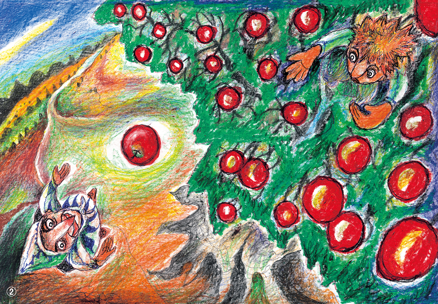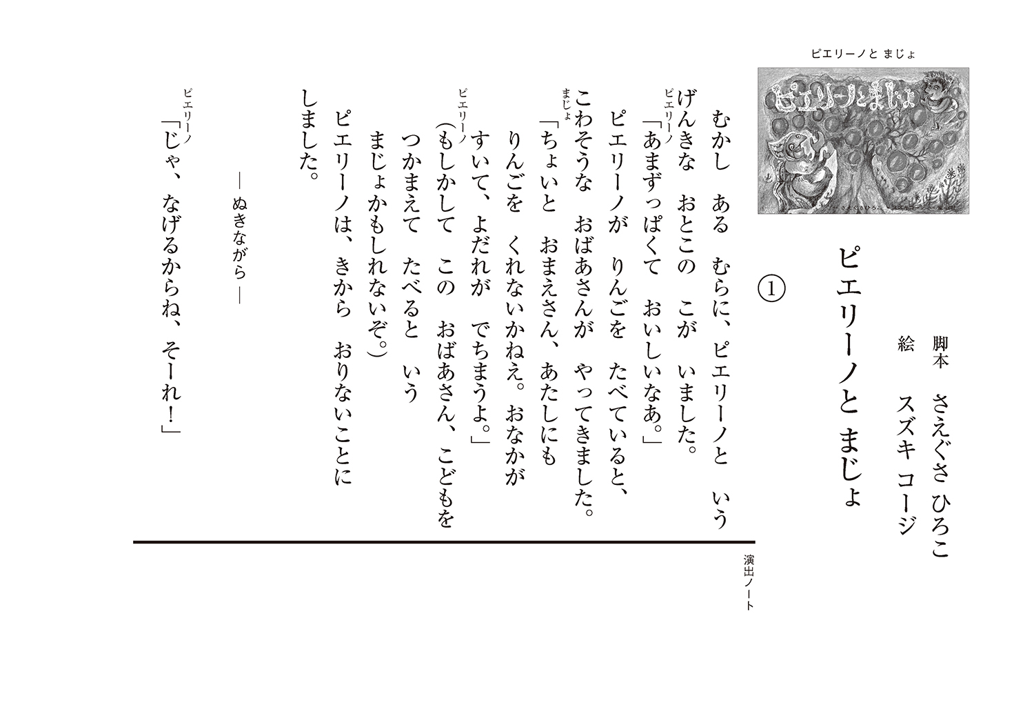 むかし、ある村にピエリーノという元気な男の子がいました。ある日、ピエリーノがりんごを食べていると、こわそうなおばあさんがきて「あたしにもりんごをわけておくれ」。ピエリーノは用心していましたが、つかまってふくろに入れられてしまいます。魔女だったのです。しかし、うまくにげだし、代わりに石をつめておいたので、魔女をおこらせてしまいます。つぎの日、しらないおばあさんがピエリーノに近づき…。