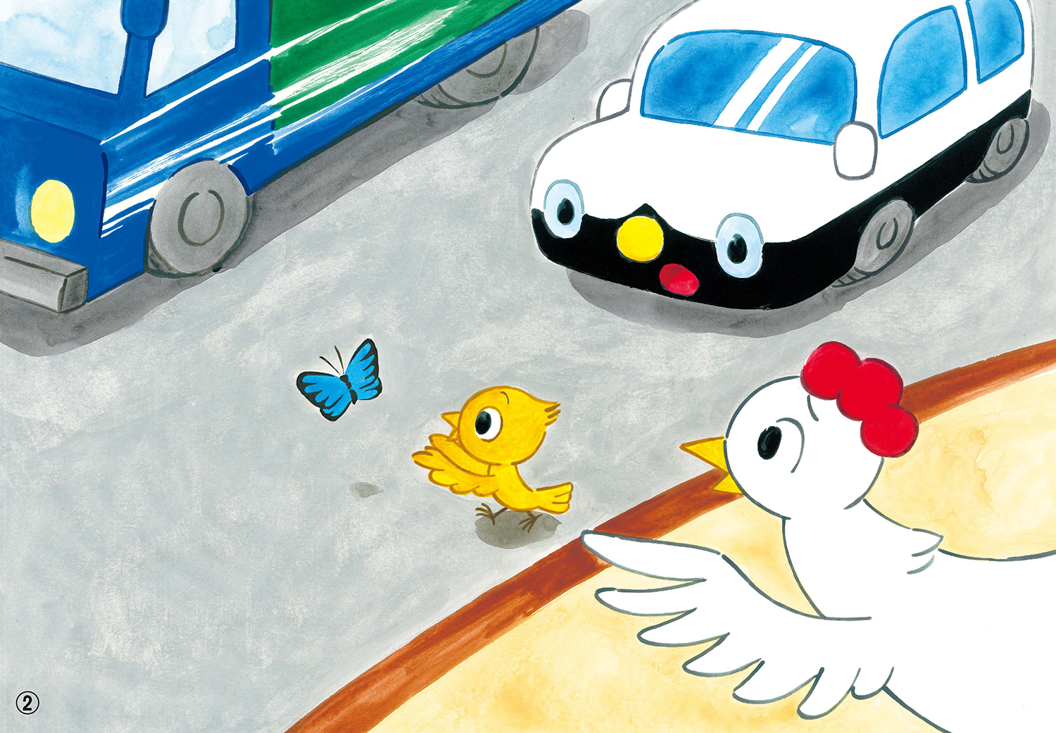 すると、「あぶない!」どうろにとびだすひよこちゃんのすがたがみえて……。