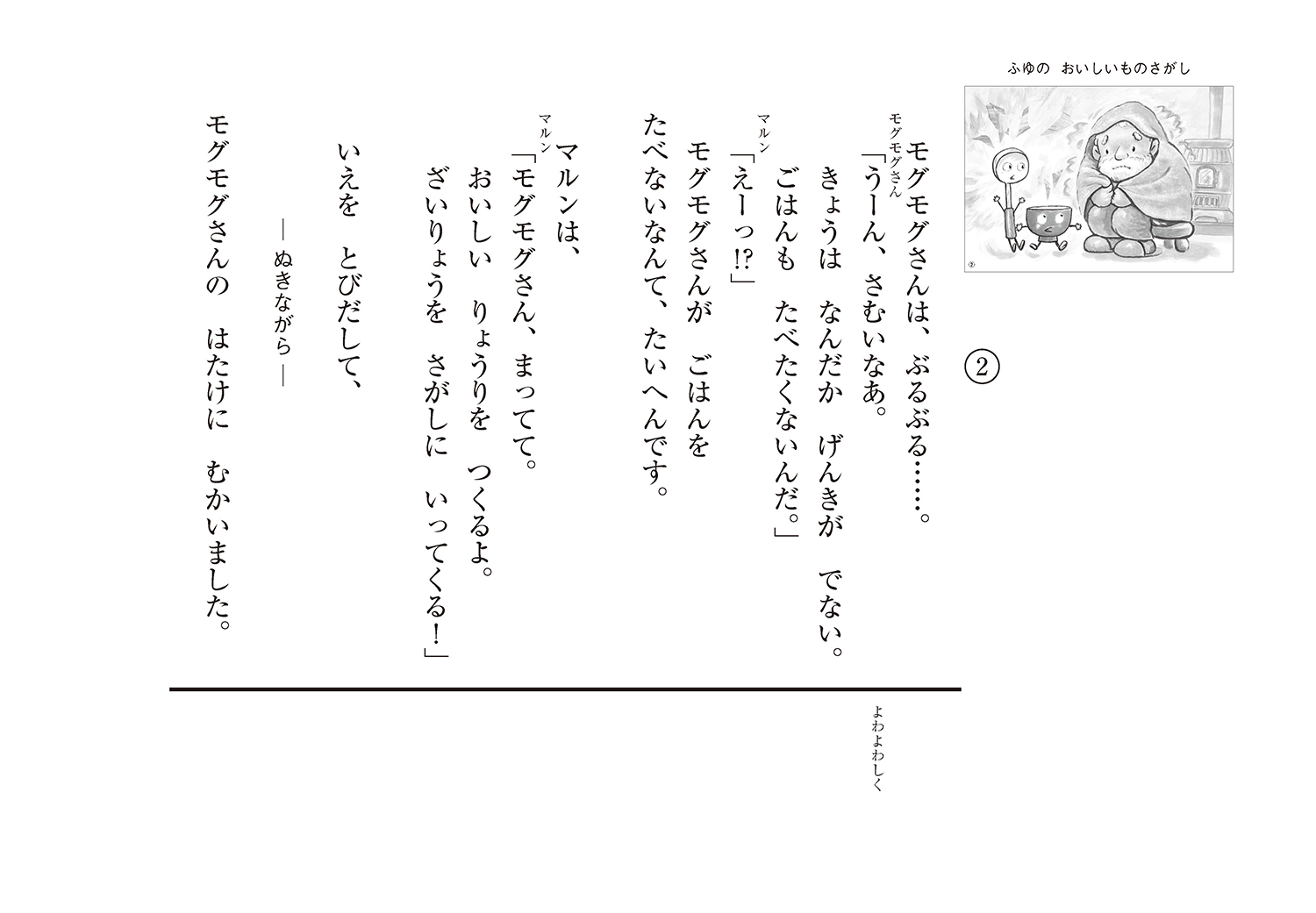 モグモグさんに元気になってもらうため、マルンは家を出て、冬のおいしいものさがしへ!