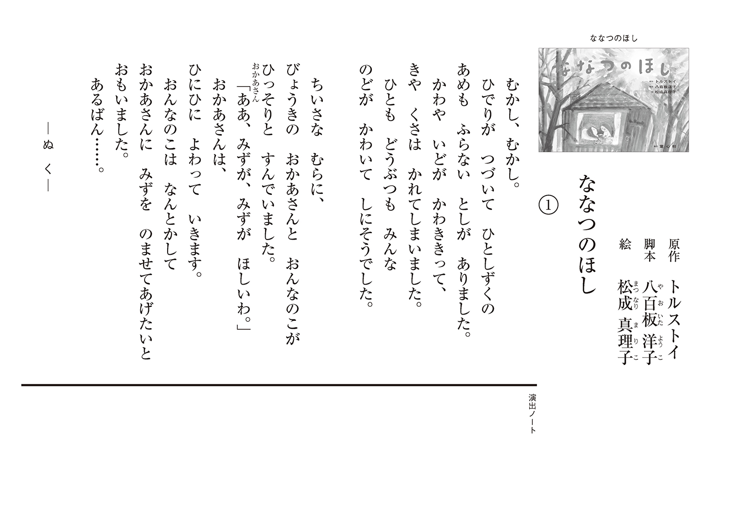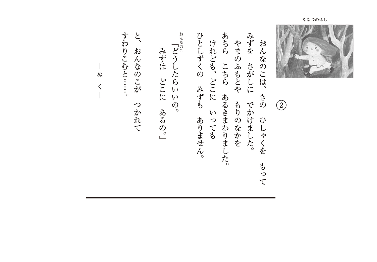 むかし、日照りがつづくちいさな村に、病気のおかあさんと女の子がすんでいました。おかあさんに水をのませてあげたいと思った女の子は、木のひしゃくをもって森へ出かけました。一日中歩きまわりますが、なかなか水がみつからず……。トルストイが描いた北斗七星の物語。