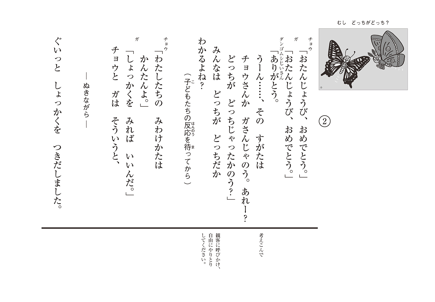 虫の特徴を楽しく知ることができる、参加型紙しばい。