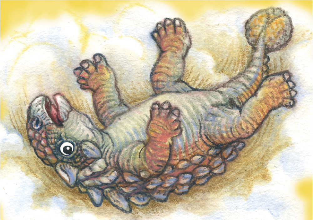 重いよろいをもつ恐竜・ズールがひっくりかえっちゃった。たすけて!