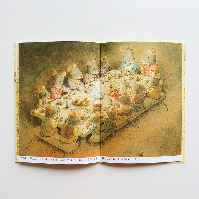 そうした中で、この「14ひきのシリーズ」を子どもと一緒に読んで、自然とはどんなものなのか、また、どうやって人と一緒に生活するのか、人と人とのつながりとはどういうことなのか、絵本を通して伝えたという感想が印象に残っています。