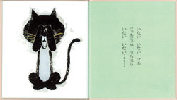 「いないいないばあ」は隠れていたものが現れる、という遊び。それがページをめくると次のページが現れるという本の特性とぴったり合い、絵本だからこそ楽しい「いないいないばあ」が生まれました。「いないいない」と「ばあ」の二つの見開きで動物の位置が変わっているのは、動くもの(めくられていくページ)を追うあかちゃんの目の動きと合っており、絵本として考えぬかれた展開です。